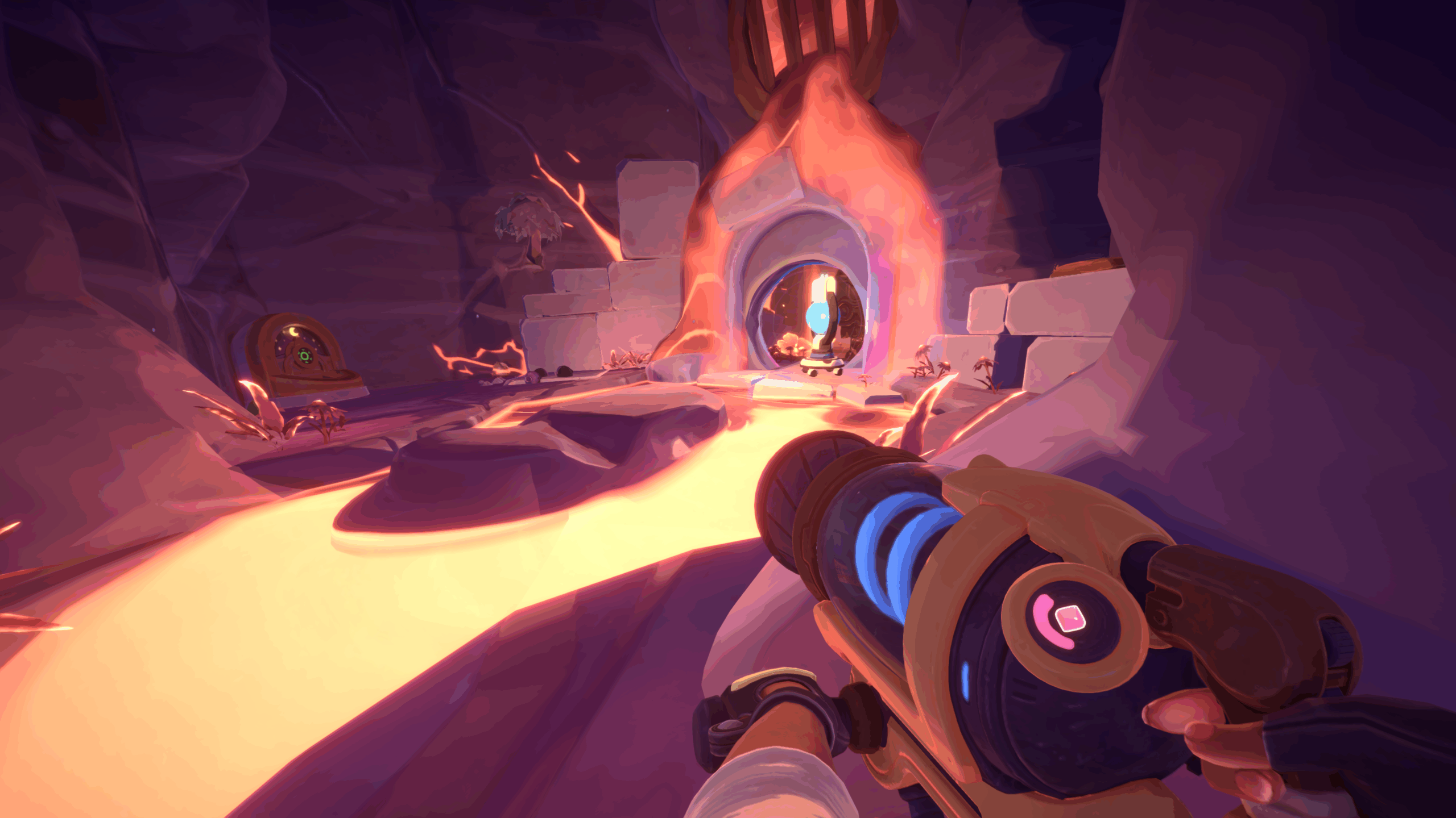 ライトプロジェクターを設置して、瓦礫で遮られている黄色い光を閉じた扉近くの光るオブジェクトまで照射すれば、扉が開いてグレーラビリンスへ行くことができます。