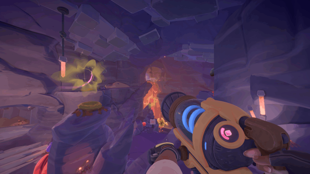 その間欠泉で高く飛び上がり、クリスタルゴルドが向いていた方向の左手に見える滝に向かってジェットパックで飛行すると、滝の裏に隠された洞窟があります。